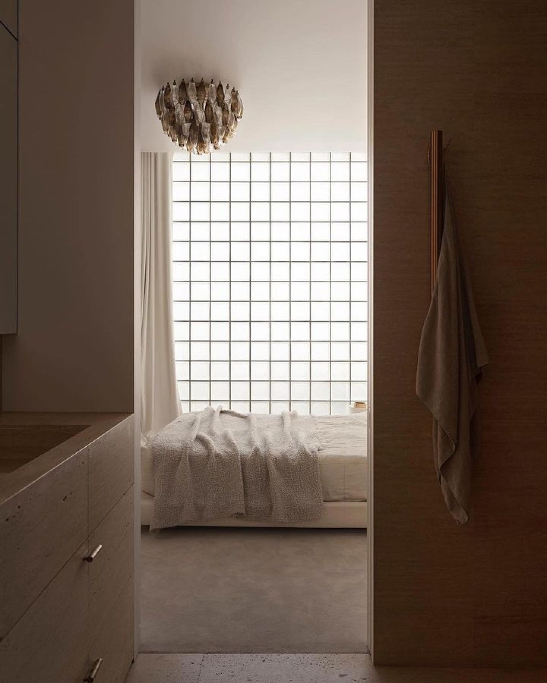 The combination of black and white points with geometric forms of lighting, glass blocks, and stairs creates a clean yet surreal atmosphere. Take a moment to appreciate each space, which exudes a high level of coherence and unity!